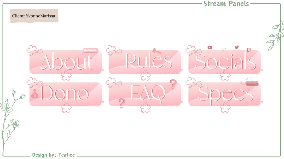 The services I offer for commissions are for the streaming and branding side. I primarily work on: